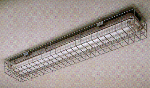 Plafoniere per fluorescenti cablate e rifasate, corpo in poliestere rinforzato in fibra di vetro, diffusore in policarbonato.